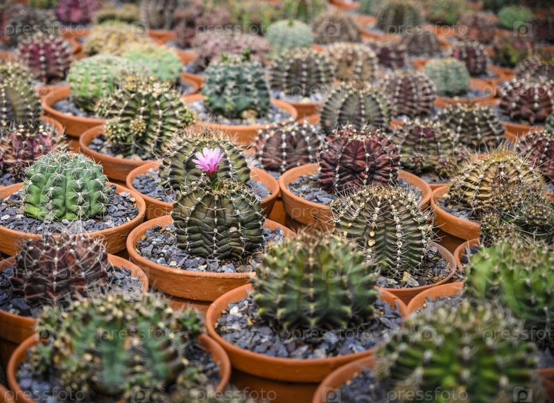 Группа кактусов в коричневых горшках