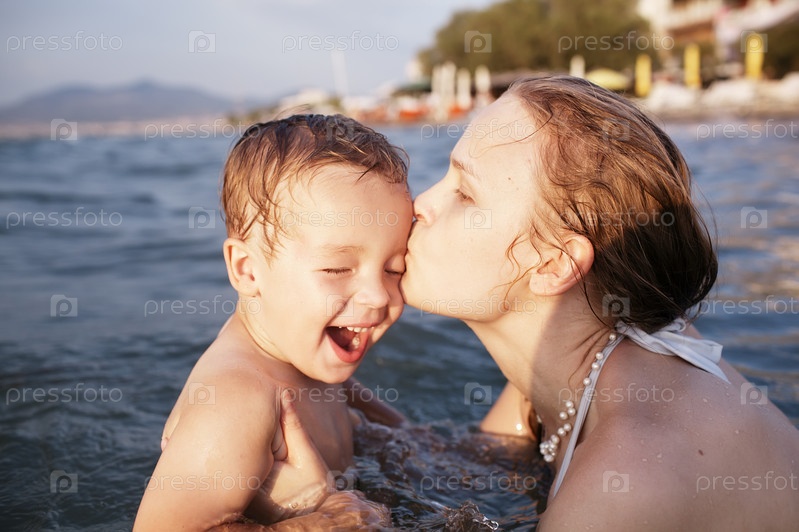 Мать целует своего маленького ребенка