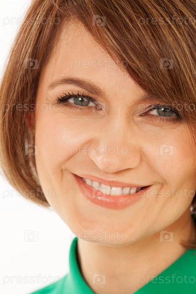 Крупный план красивой взрослой женщины, улыбающейся в камеру