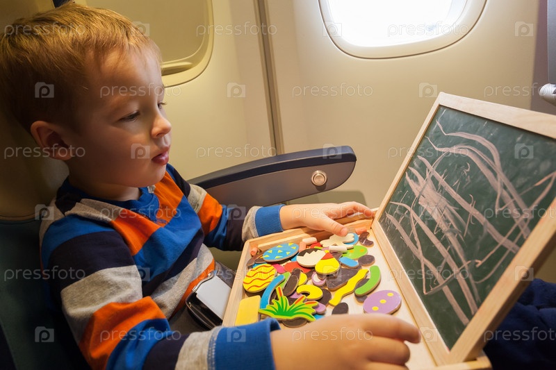 Мальчик в самолете рисует мелом на борту