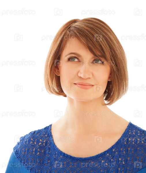 Портрет красивой взрослой женщины, мечтательно смотрящей вверх