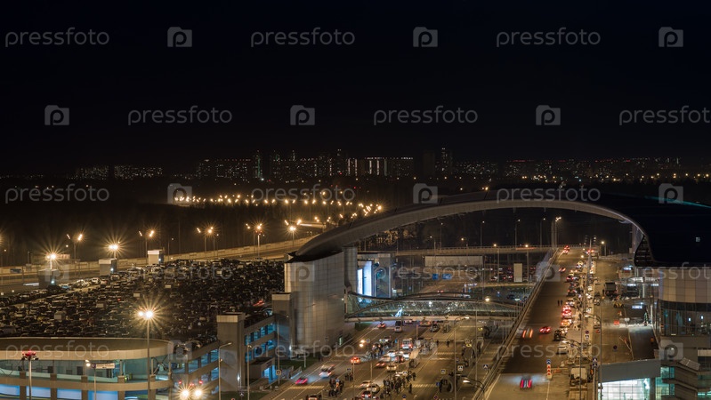 Оживленное автомобильное движение в освещенном ночью городе