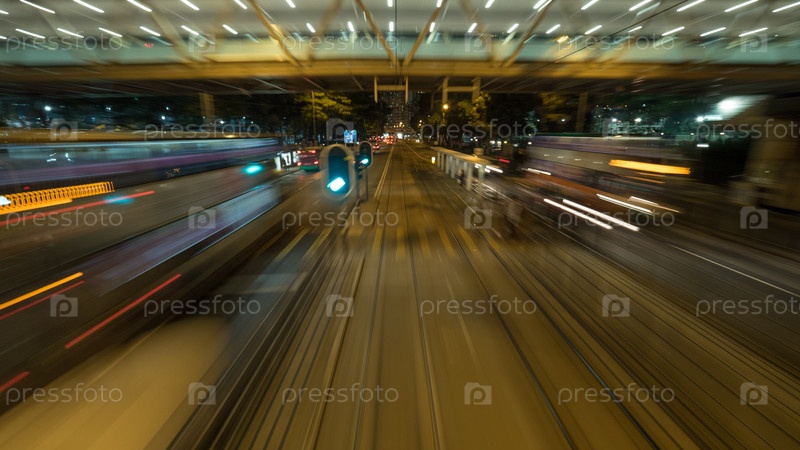 Вид из движущегося трамвая в ночном Гонконге