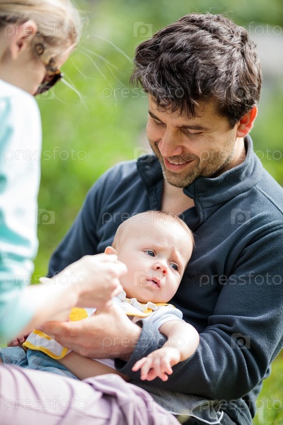 Мама и папа ухаживают за ребенком