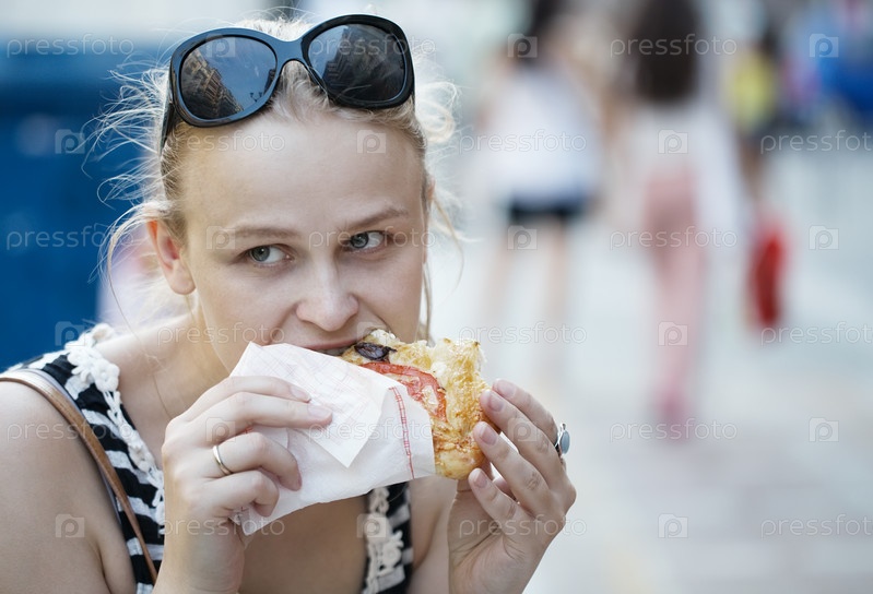 Молодая женщина ест