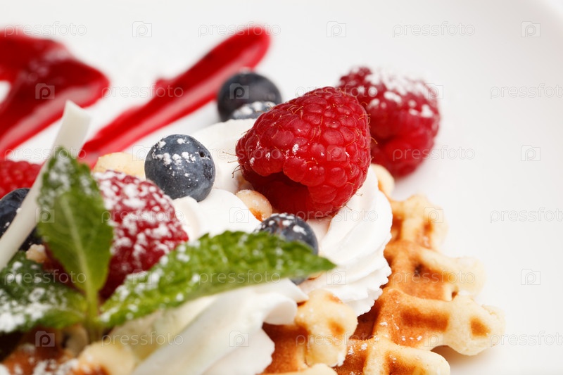 Вафли и крем со свежими ягодами