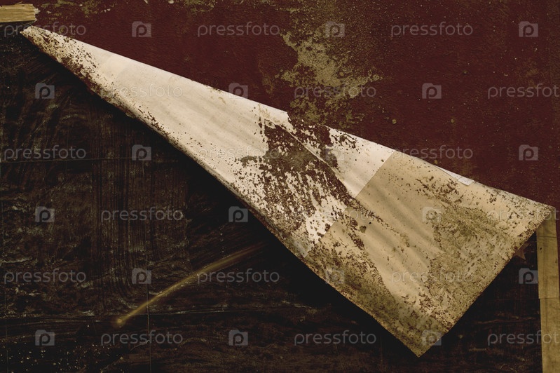 Край облупившегося плаката на красной стене