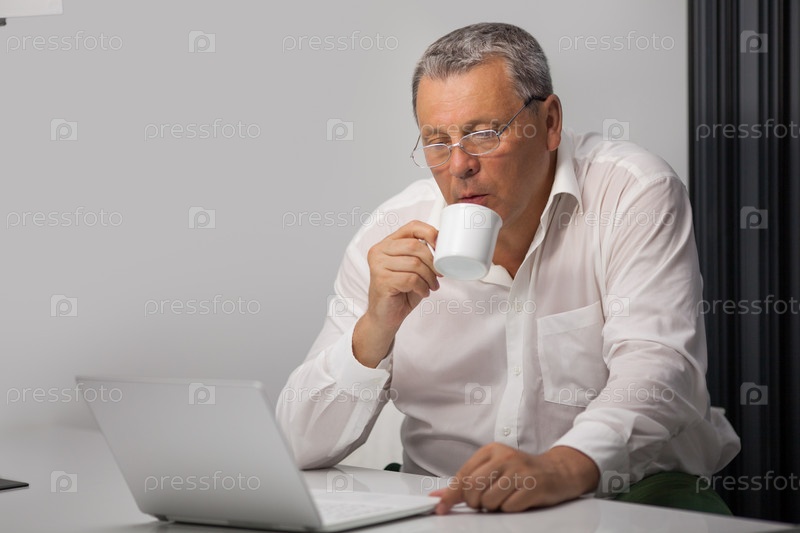 Бизнесмен пьет кофе во время работы в офисе