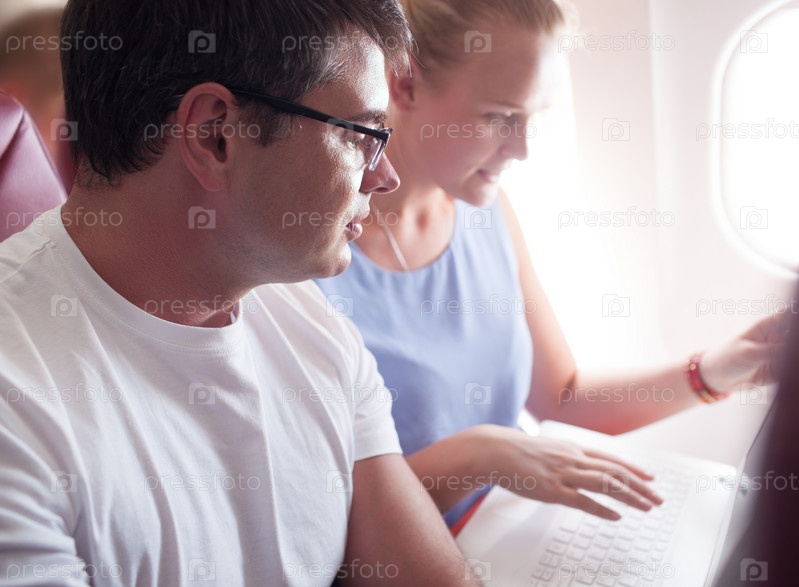 Люди с ноутбуком в самолете