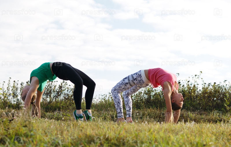 Две девушки тренируются