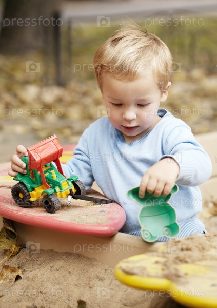 Мальчик играет с игрушкой на улице