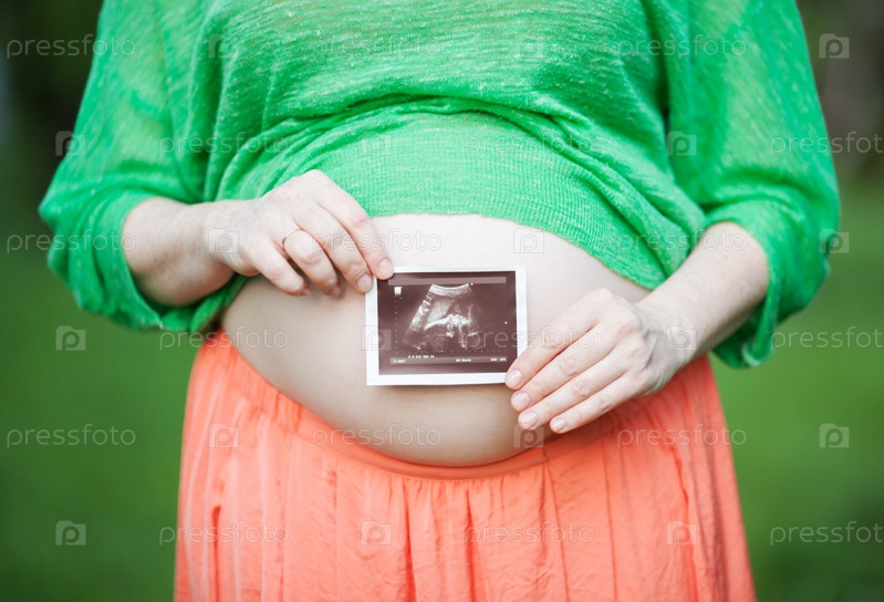 Беременная женщина с ультразвуковым изображением ребенка