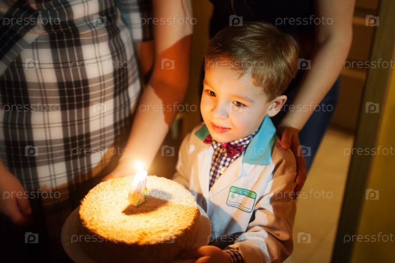 Маленький мальчик с праздничным тортом