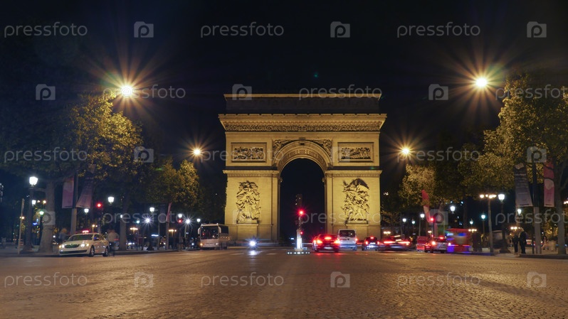Триумфальная арка, Париж, освещенный ночью