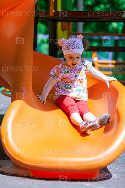 Маленькая девочка развлекается на горке