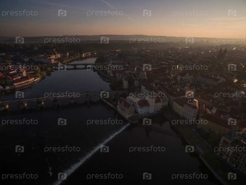 Панорама Праги с рекой Влтавой, вид с воздуха
