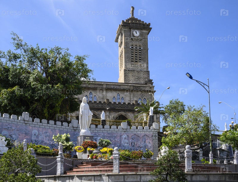 Собор в городе Нячанг во Вьетнаме. Ясный солнечный день 11 января 2020 г