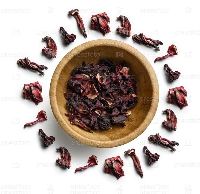 Чай из гибискуса для приготовления напитка на белом фоне