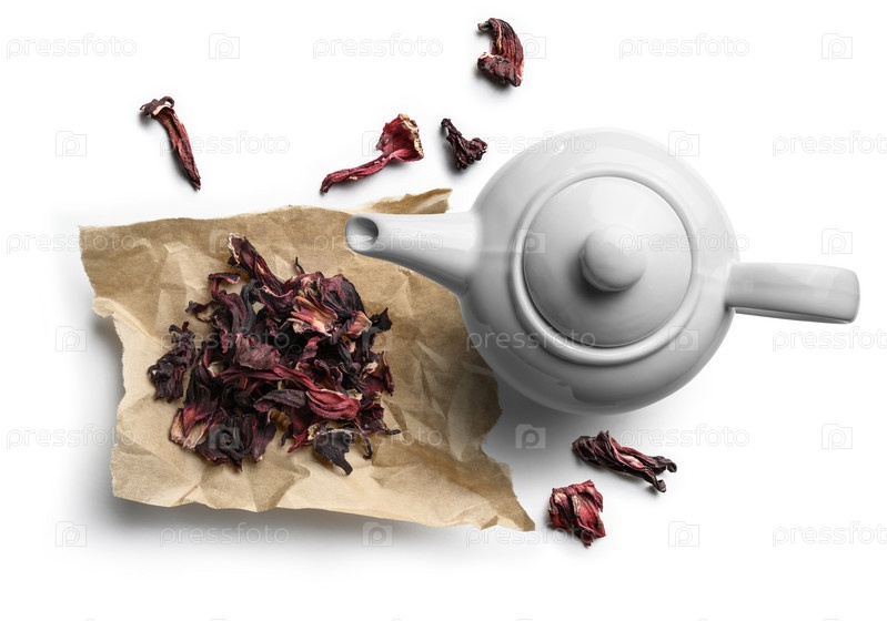 Чай из гибискуса для приготовления напитка на белом фоне