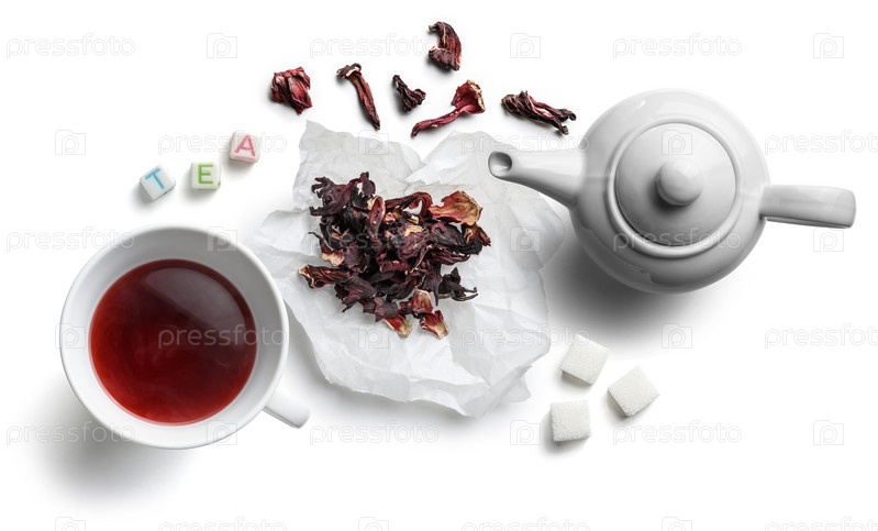 Чай из гибискуса для приготовления напитка на белом фоне