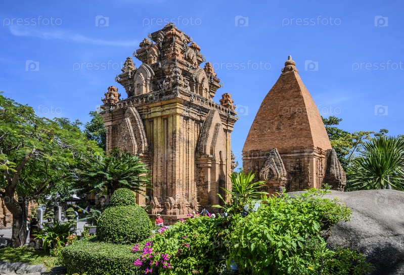 Чамские башни Понагара в городе Нячанг во Вьетнаме. Ясный солнечный день 11 января 2020 г