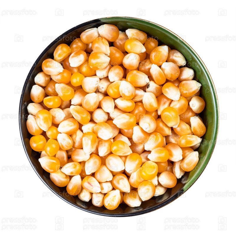 Сырая кукуруза в круглой миске, изолированная на белом
