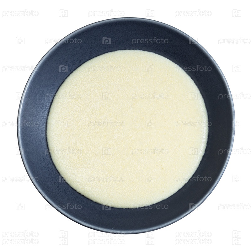 Приготовленная манная крупа из твердых сортов пшеницы в серой миске изолирована