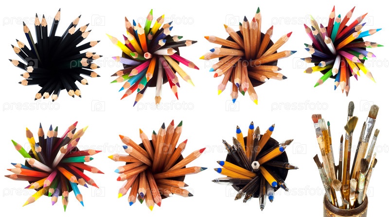 Набор различных изолированных ручек и карандашей с веером