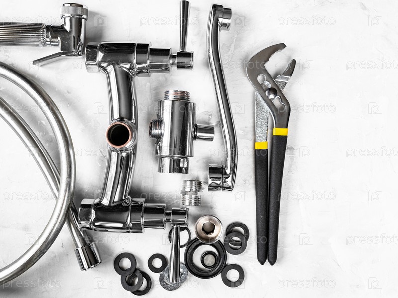 Верхняя часть гаечного ключа, разобранный кран с копирайтом