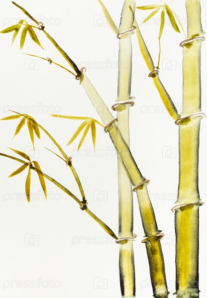Бамбуковый куст нарисован вручную на кремовой бумаге
