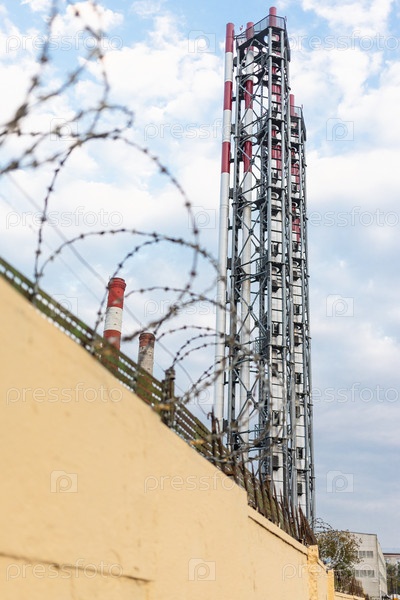Трубы и забор с колючей проволокой