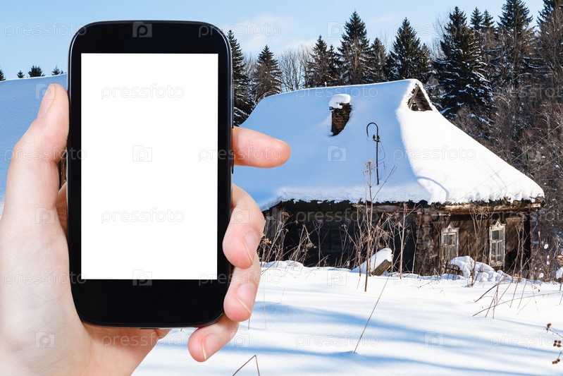 Заснеженные старые заброшенные сельские дома зимой
