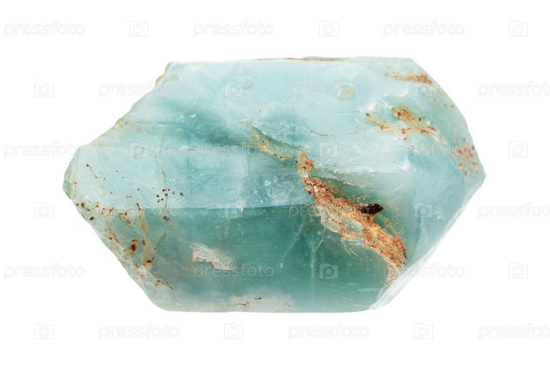 Грубый светло-голубой кристалл апатита, изолированный на белом