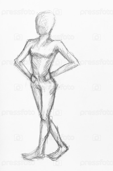 Набросок идущей женской фигуры черным карандашом