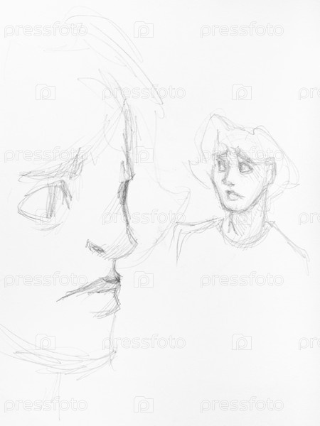 Эскизы мужской головы и лица черным карандашом