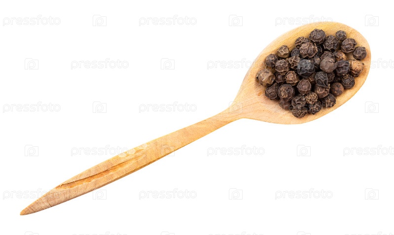 Вид сверху на хайнаньский черный перец в деревянной ложке