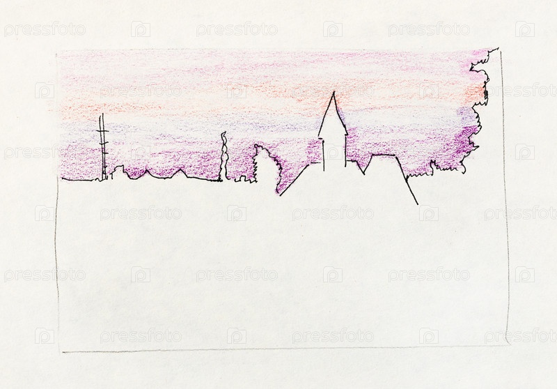 План горизонта города Гатчины под фиолетовым небом