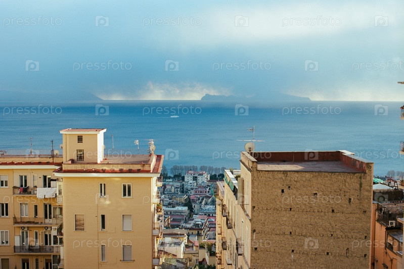 Побережье моря и Неаполя с домами, Италия