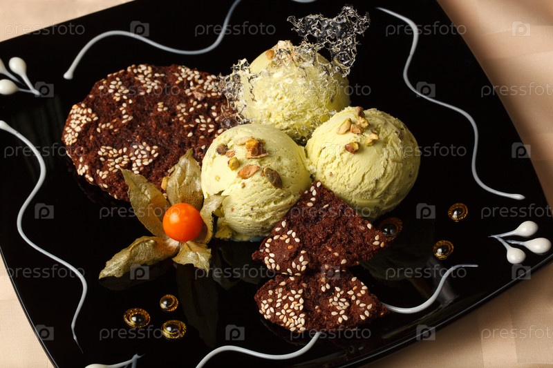 Фисташковое мороженое с шоколадным печеньем