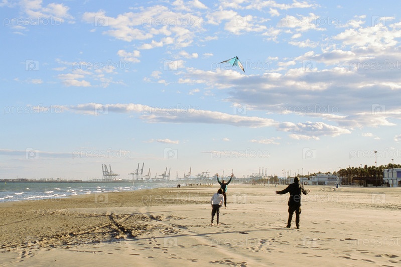 Запуск воздушного змея на пляже