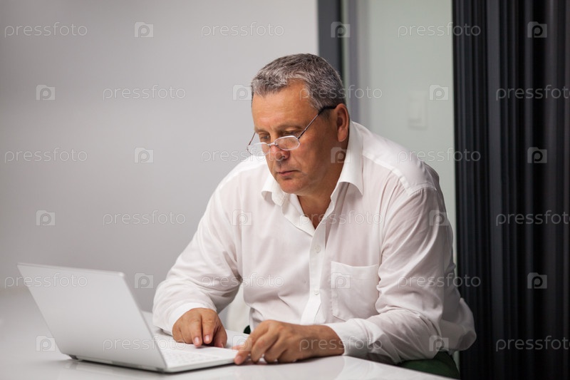 Старший бизнесмен, работающий с ноутбуком в офисе