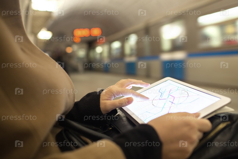 Планшет в женских руках с картой метро в метро