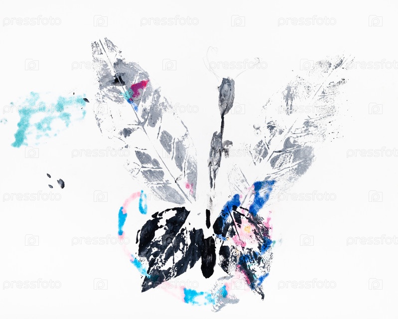 Отпечатки листьев в виде бабочек на окрашенной бумаге