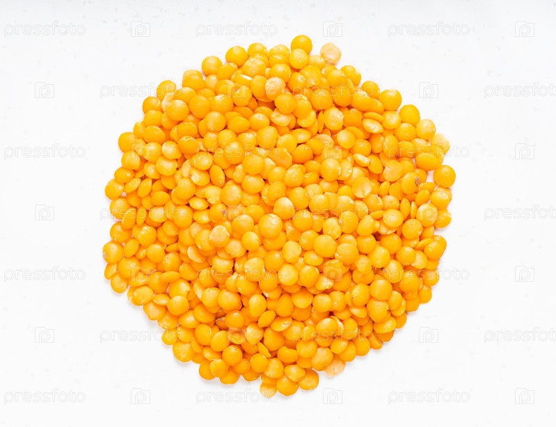 Куча сырой цельной красной чечевицы крупным планом на сером