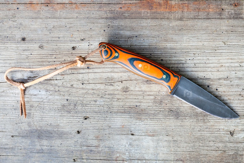 Нож ручной работы из черненой стали с ремешком