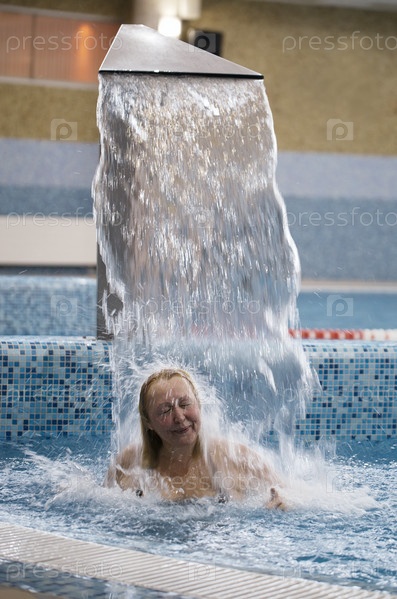 Под струей воды в бассейне