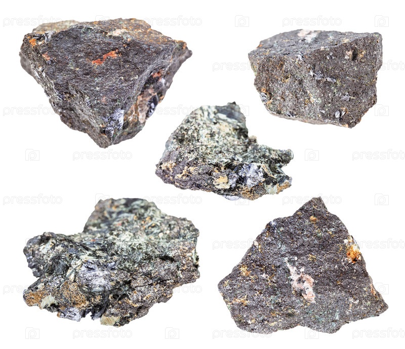 Набор молибденитовых рудных пород, изолированных на белом