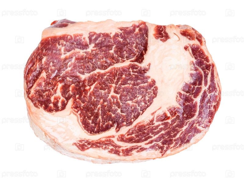 Изолированный вид сверху на сырой стейк из говядины рибай