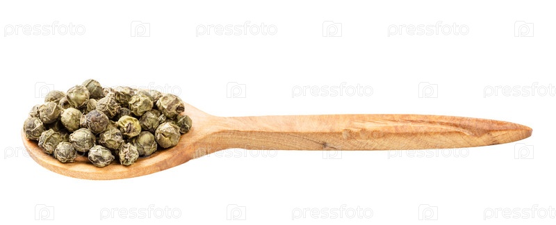 Деревянная ложка с горошком зеленого перца