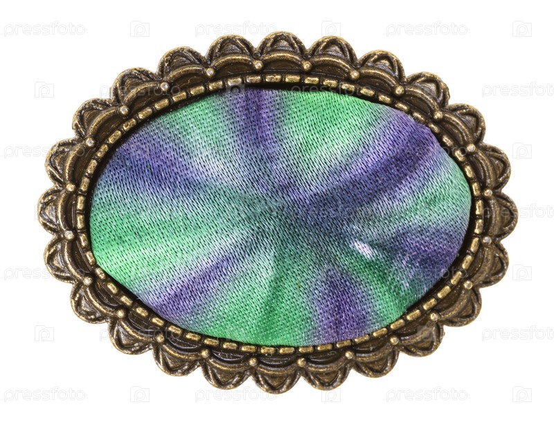 Бронзовая брошь с шелковой вставкой ручной росписи батик